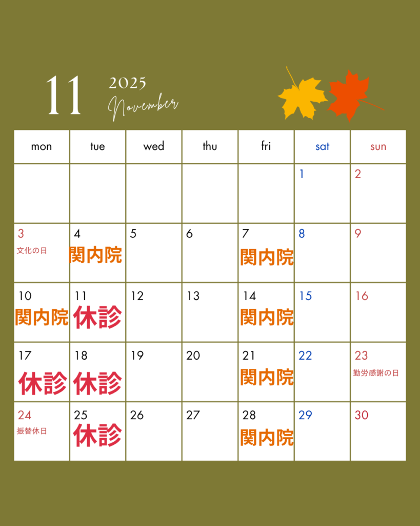 どちらの院も休診日は電話応対・メール応対ができかねますのでご了承くださいませ。