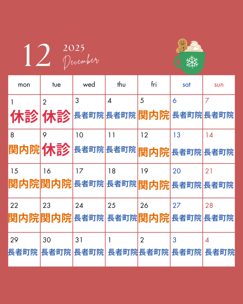 12月・1月診療日のおしらせ